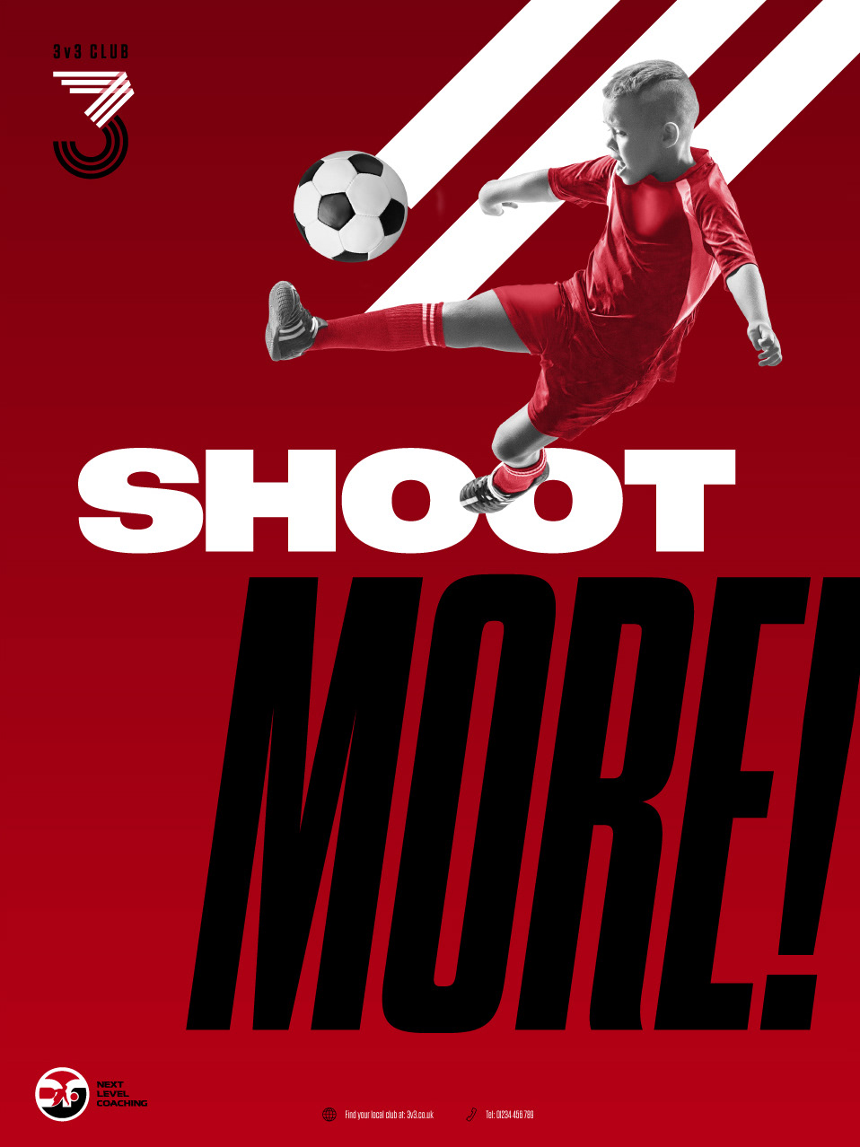 Problem: Create an identity for a brand new football coaching concept that provides maximum opportunities for individuals to develop their skills and confidence. Small sided games support players whilst they are learning the skills, rules, tactics and strategies required to play football. Sessions are fast-paced and fun and keep all players active and involved. Players have 10x as many touches at a 3v3 session than in a club game. Solution: Creation of the ‘3v3 Club’ identity including logo, launch campaign messaging, social media and website. Outcome: A local initiative that has since been franchised to a number of soccer academies in the USA.