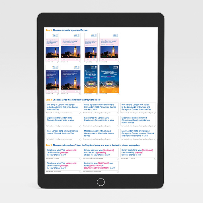 Problem: Given the IOC’s strict guidelines and unrealistic deadlines, how can we deliver branded artwork for 120 banks in 32 European countries during the London 2012 Games? Solution: The creation of an IOC pre-approved template artwork system along with detailed guidance on how and where a member bank can adapt artwork without the need for re-submission. Outcome: A fool-proof method of delivery that was used by Visa Europe for future sponsorship opportunities like the FIFA World Cup. “Visa have worked with Andy since 2003 and he was the obvious person to trust with this project. His attention to detail is second to none. IOC deadlines are notoriously tight but Andy didn’t let us down.” James Owen, Head of brand, Visa Europe